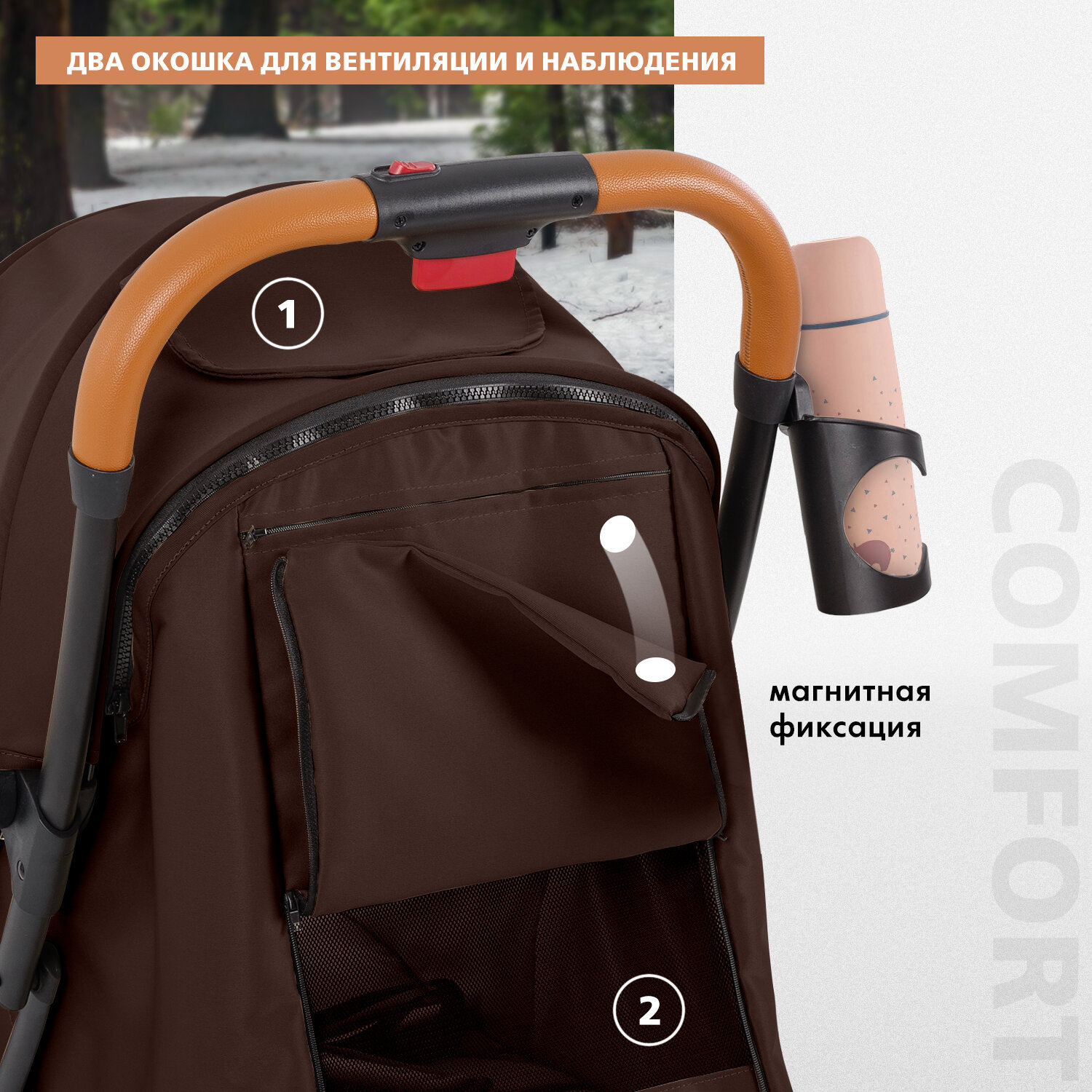 | Отзыв: | Катаемся с апреля, для лета есть дождевик, москитка и подстаканник, он кстати хорошо держит бутылочку, не слетает, да и ничего не проливается в нем. |