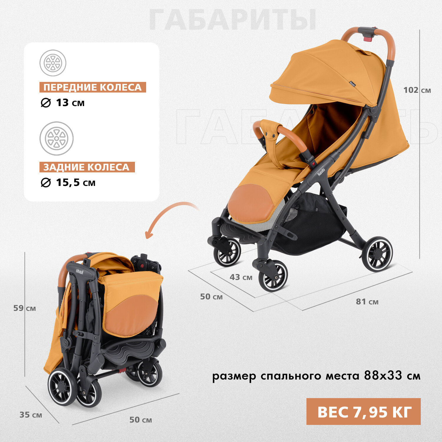 Коляска прогулочная Nuovita Jazz 7-36 месяцев, всесезонная складная детская, с поворотными колесами и амортизацией, легкая для путешествий (Arachide/Арахис)