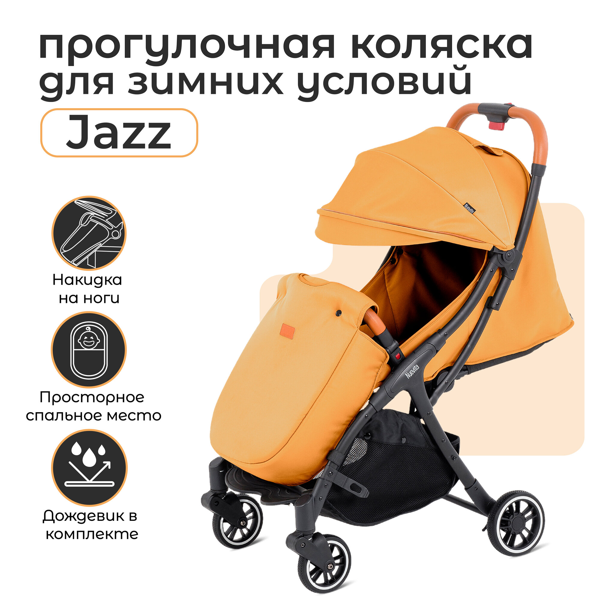 Купить Коляска прогулочная Nuovita Jazz 7-36 месяцев, всесезонная складная детская, с поворотными колесами и амортизацией, легкая для путешествий (Zucca/Тыква)