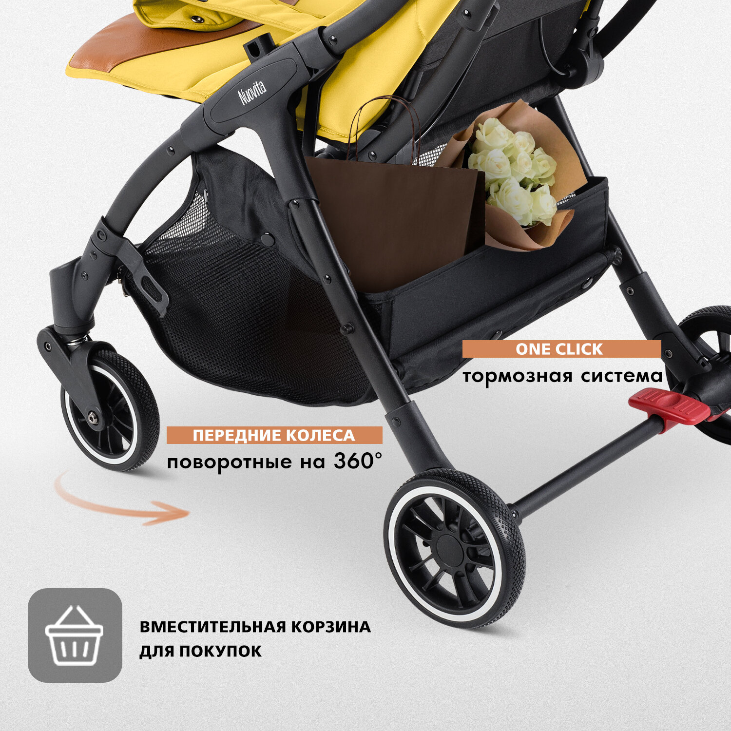 Купить Коляска прогулочная Nuovita Jazz 7-36 месяцев, всесезонная складная детская, с поворотными колесами и амортизацией, легкая для путешествий (Giallo/Желтый)