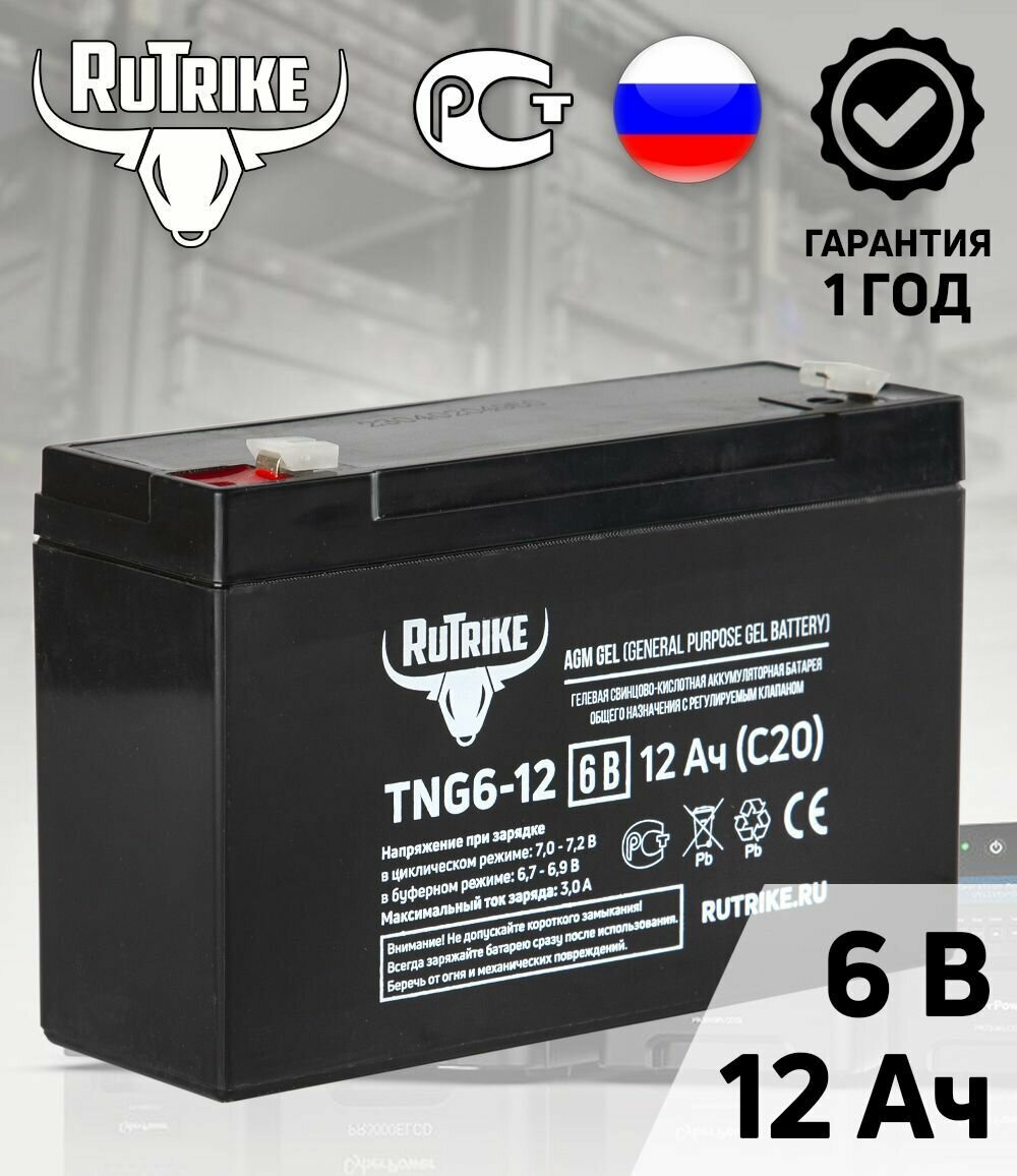 Аккумулятор для ИБП/систем наблюдения/оповещения RuTrike TNG6-12 (6V12A/H C20)