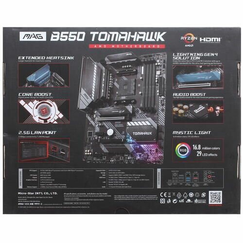 Материнская плата MSI MAG B550 TOMAHAWK Soc-AM4 AMD B550 4xDDR4 ATX AC`97 8ch(7.1) 1 x 2.5Gigabit + Gigabit Ethernet RAID+HDMI+DP