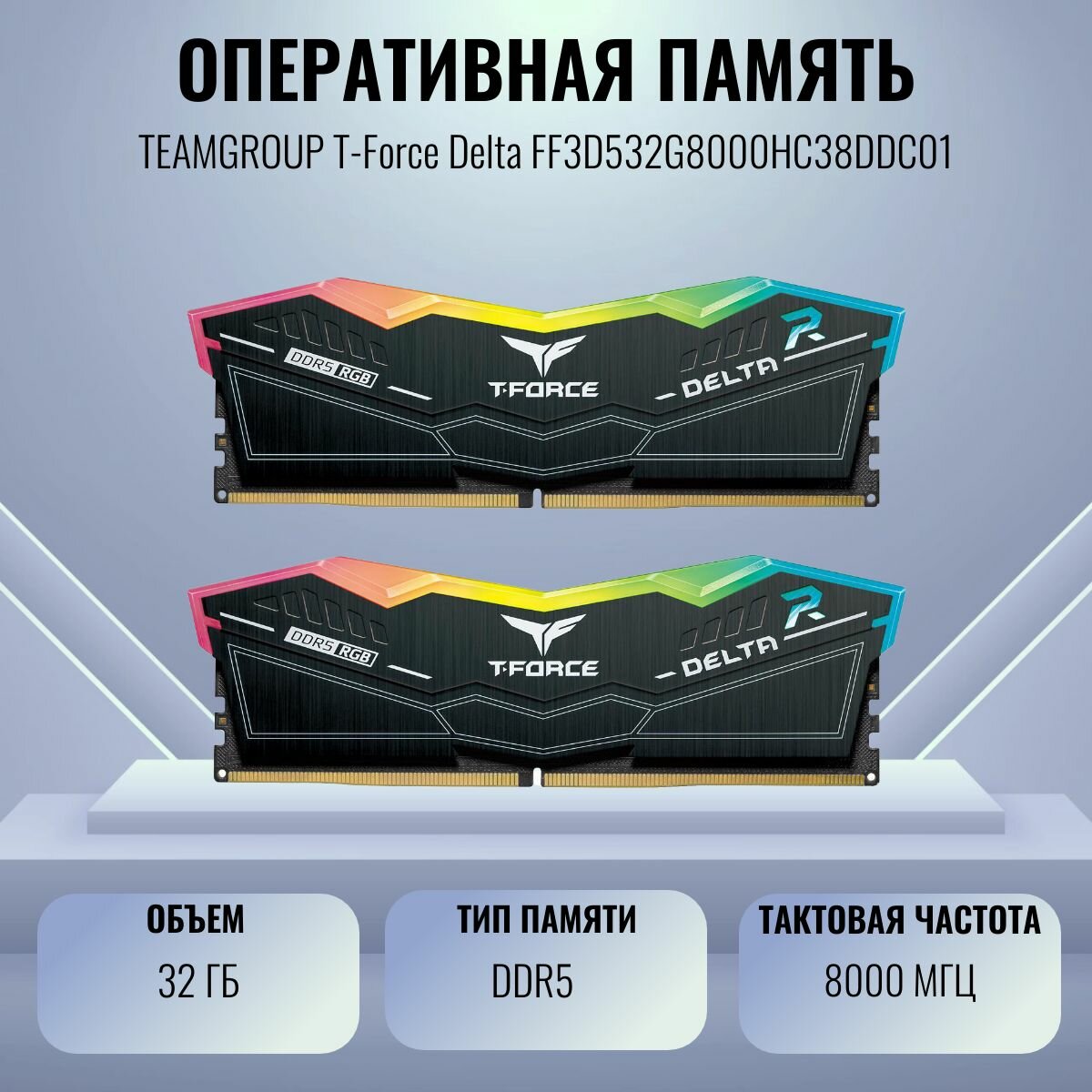Оперативная память Team Group DDR5 T-Force Delta RGB 32GB (2x16GB) 8000MHz CL38 (38-48-48-84) 1.4V Black (FF3D532G8000HC38DDC0)