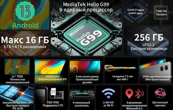 СохранитьПланшет Teclast T50 Pro 10.95 256Gb Gray Wi-Fi Bluetooth Android 6940709685297 интересное: