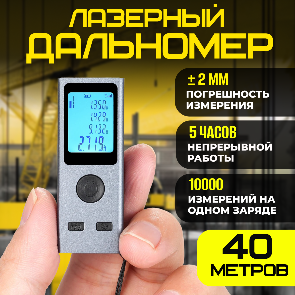 Дальномер лазерный строительный, 2 точки отсчета, 12 функций