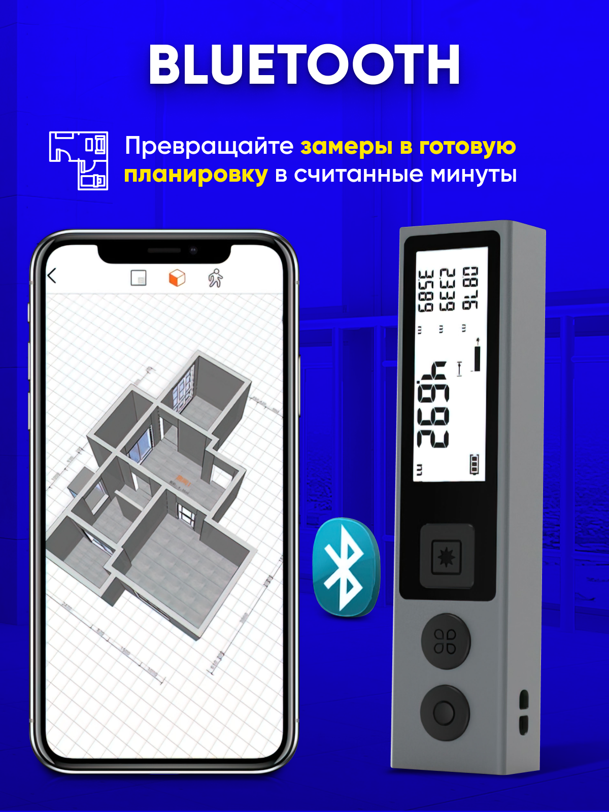 Дальномер лазерный строительный, планировка в приложении, 30 м интересное: