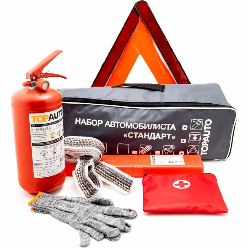 Купить TOPAUTO НАС2 Набор Автомобилиста СТАНДАРТ2 (Сумка, огнетушитель ОП-2 железный с манометром, Трос 3,5т 2 петли, Ап ТОП авто НАС2