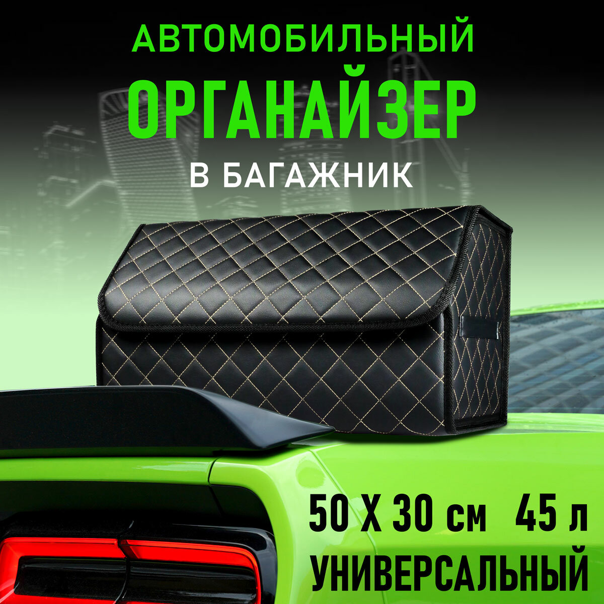 СохранитьCarCape/ Сумка органайзер в багажник автомобиля. Автомобильный аксессуар для хранения. Модель Classic ромб 50*30см/ Черный, бежевая строчка интересное: