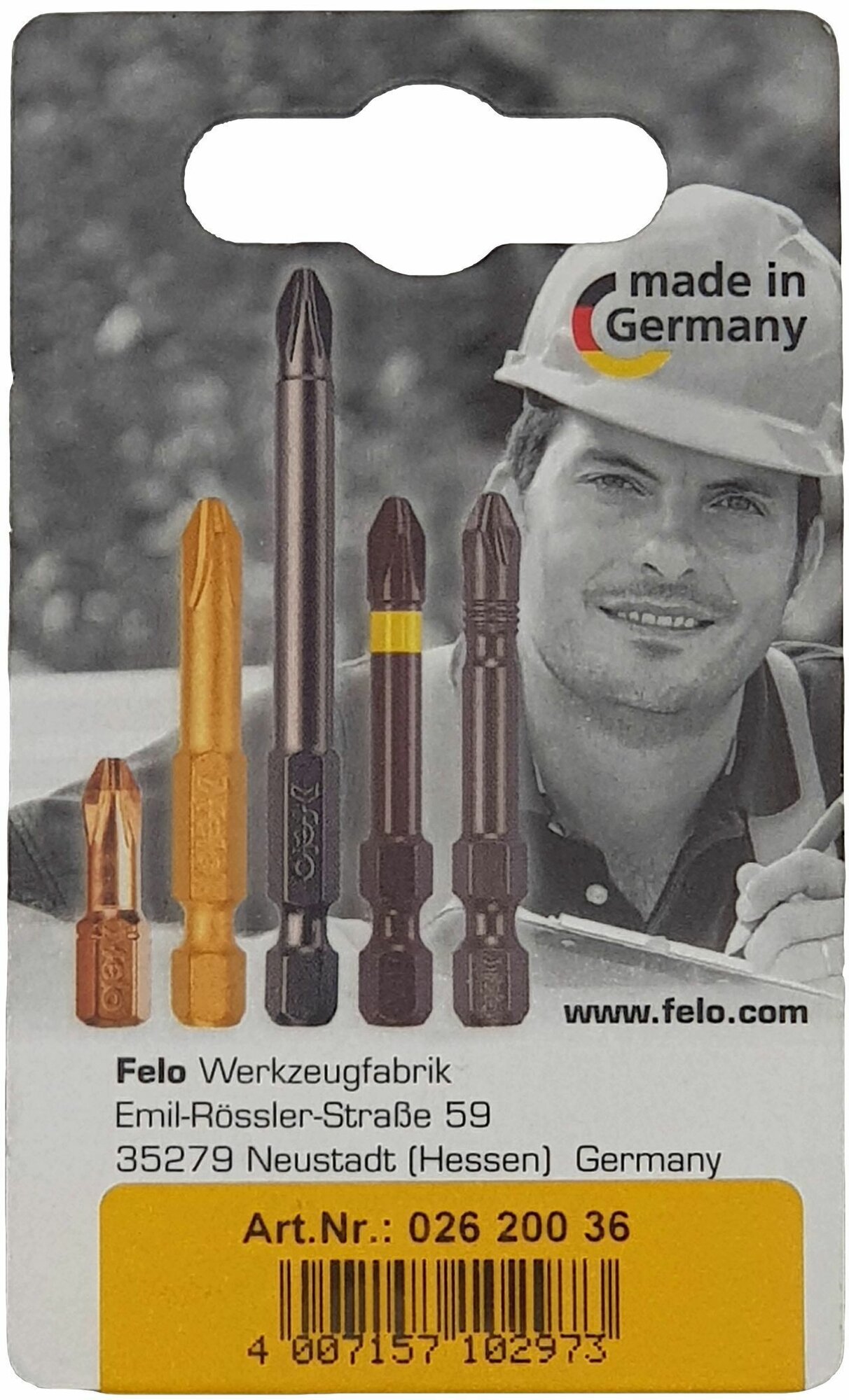 Биты FELO 02620036, Torx 20X25, серия Industrial, 2 шт в блистере