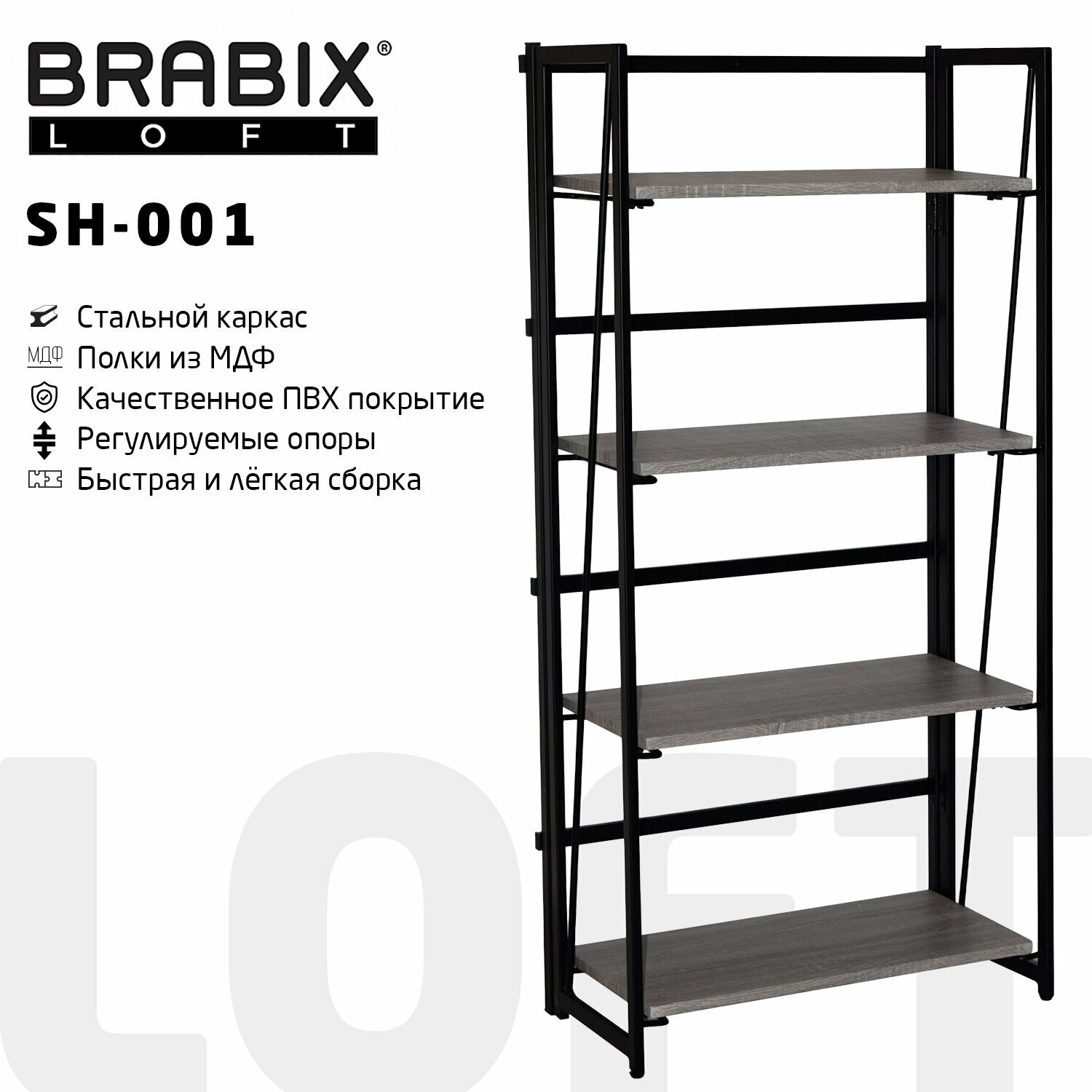 Купить Стеллаж на металлокаркасе Brabix "Loft SH-001" 600х300х1250 мм, складной, дуб антик