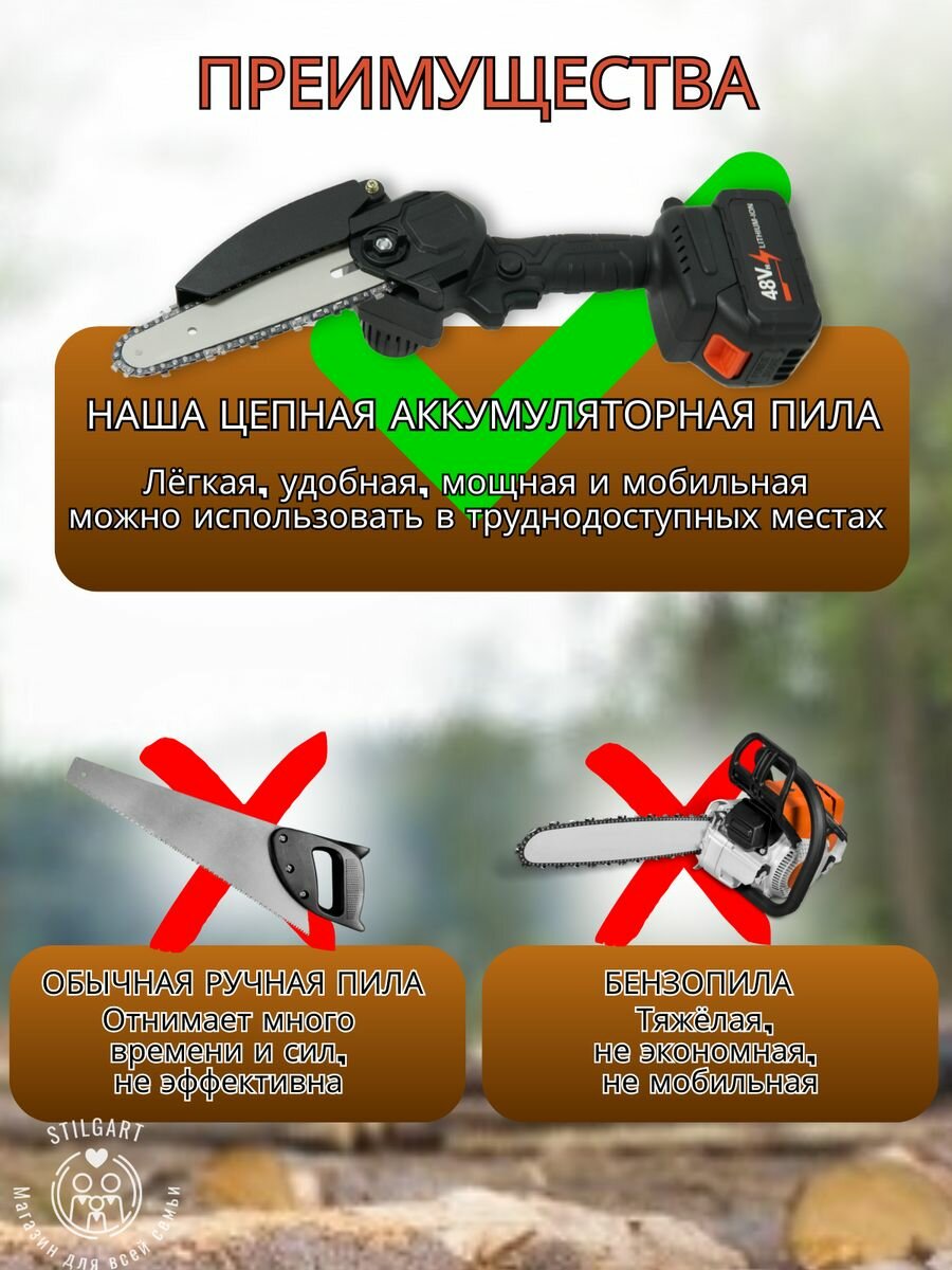 Электропила аккумуляторная ручная Пила цепная 24Вт