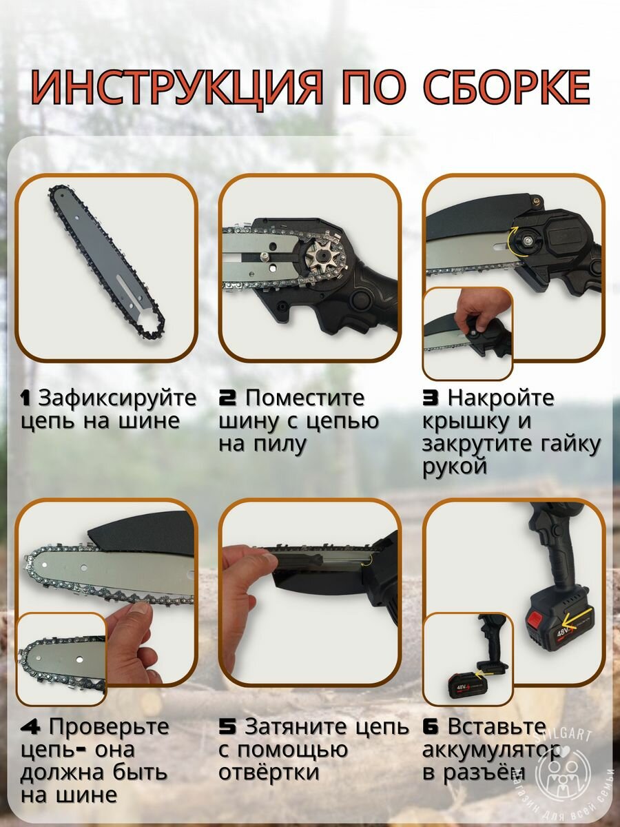 | Комплект поставки | пила - 1 шт.; цепь - 1 шт.; аккумулятор - 1 шт.; зарядное устройство - 1 шт.; коробка - 1 шт.; ключ и отвертка |