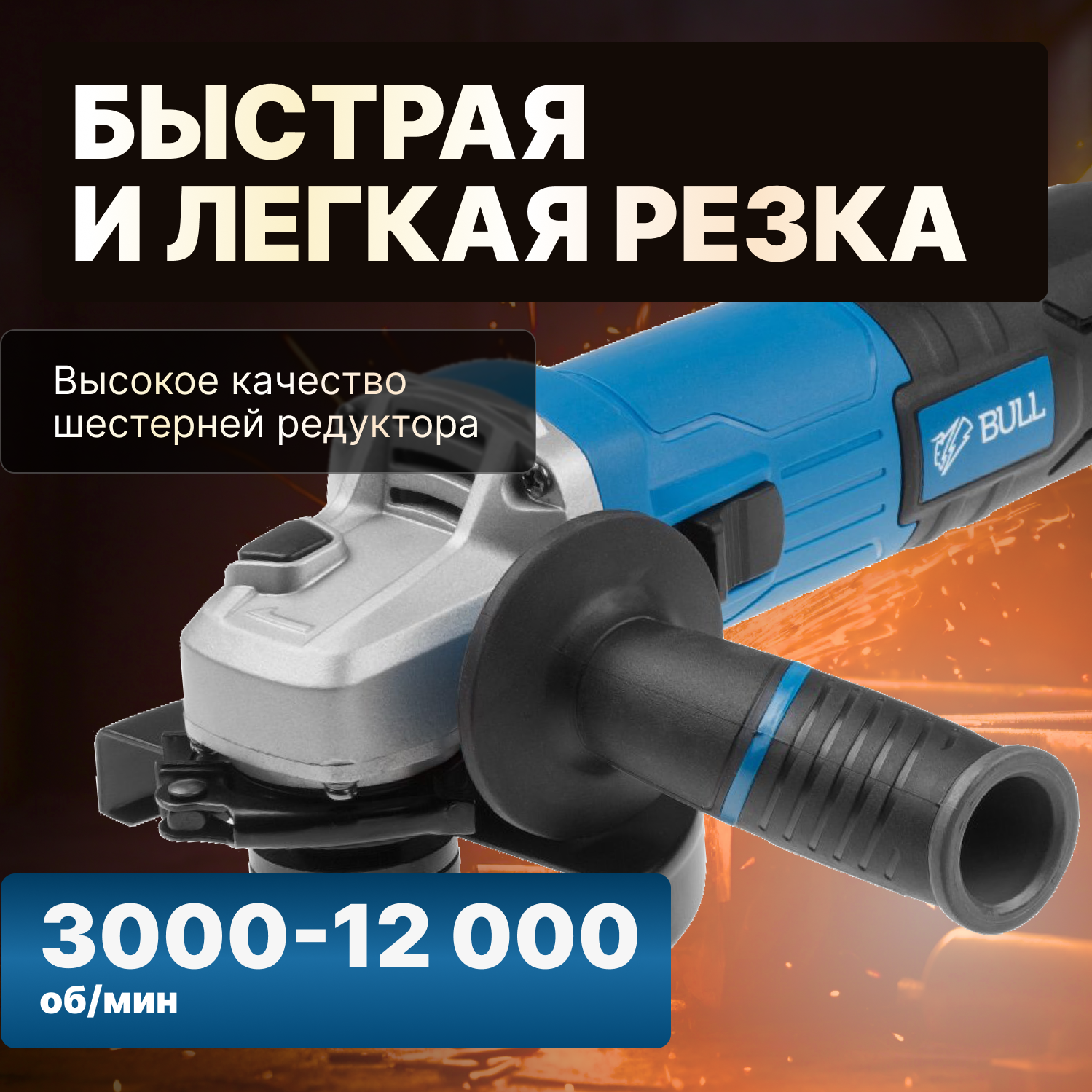 Одноручная углошлифмашина BULL WS 1202 в кор. 125 мм, 950 Вт, плав. пуск., рег. об, 3000-12000 (03014126) интересное: