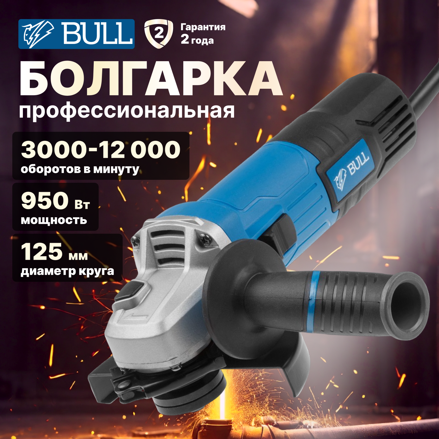 УШМ BULL 03014126, 950 Вт, 125 мм