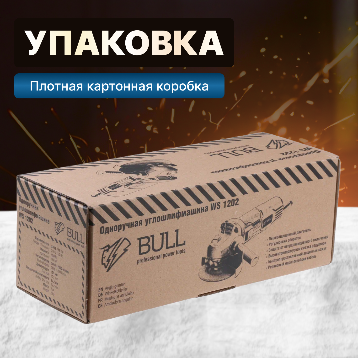 Одноручная углошлифмашина BULL WS 1202 в кор.