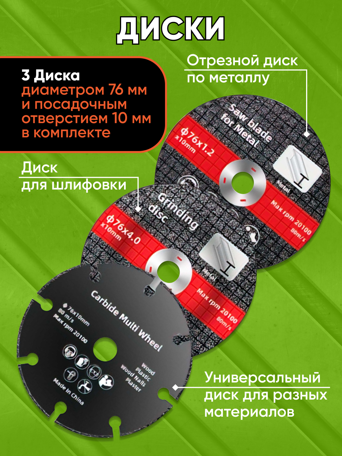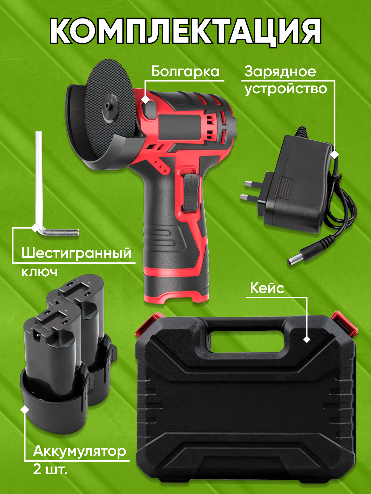 Болгарка аккумуляторная 12V 2Ah УШМ с плавным пуском и защитой от перегрузки