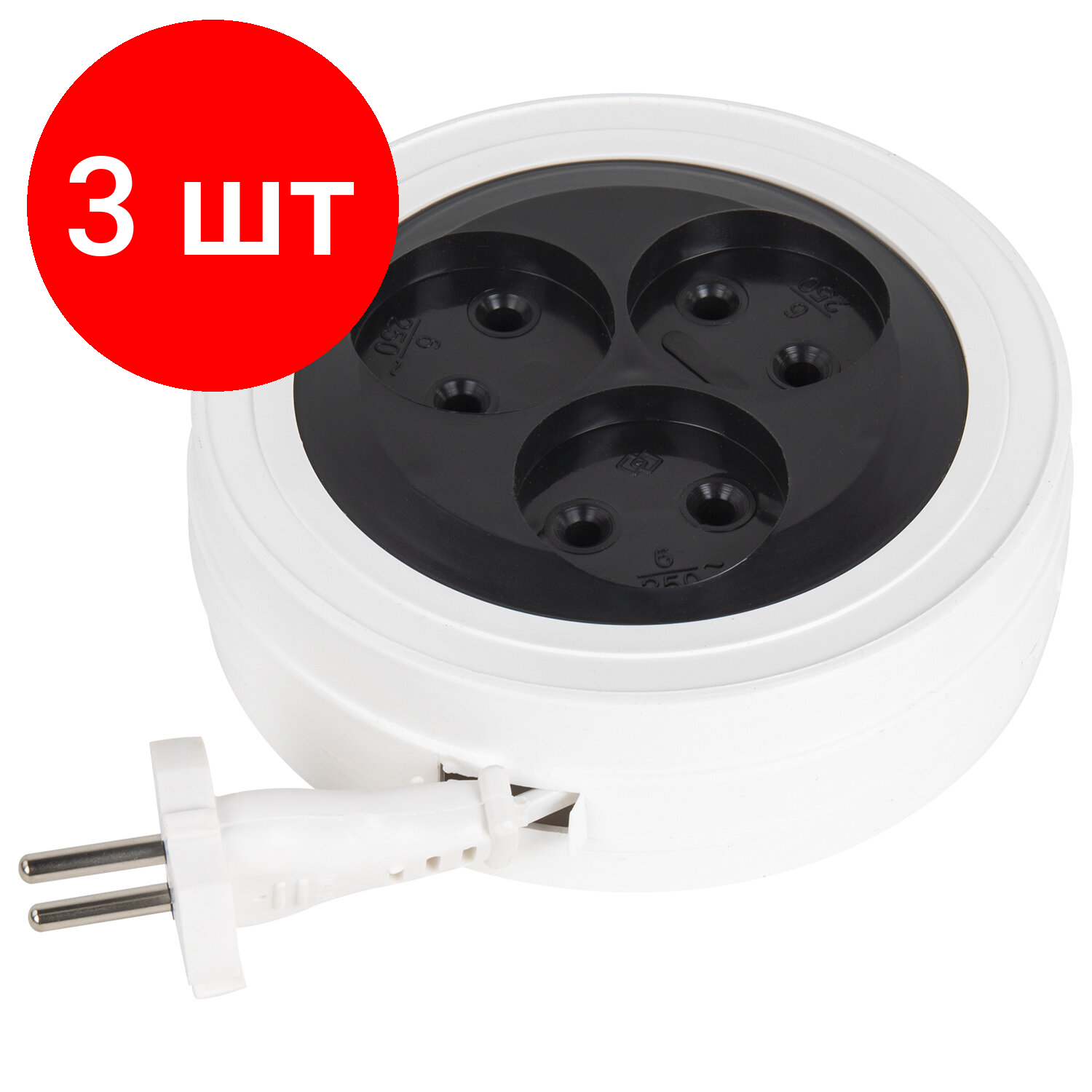 Купить Комплект 3 шт, Удлинитель-рулетка радист эконом Р16-008, 3 розетки без заземления, 5 м, 2х0.75 мм, 1300 Вт, белый, 323