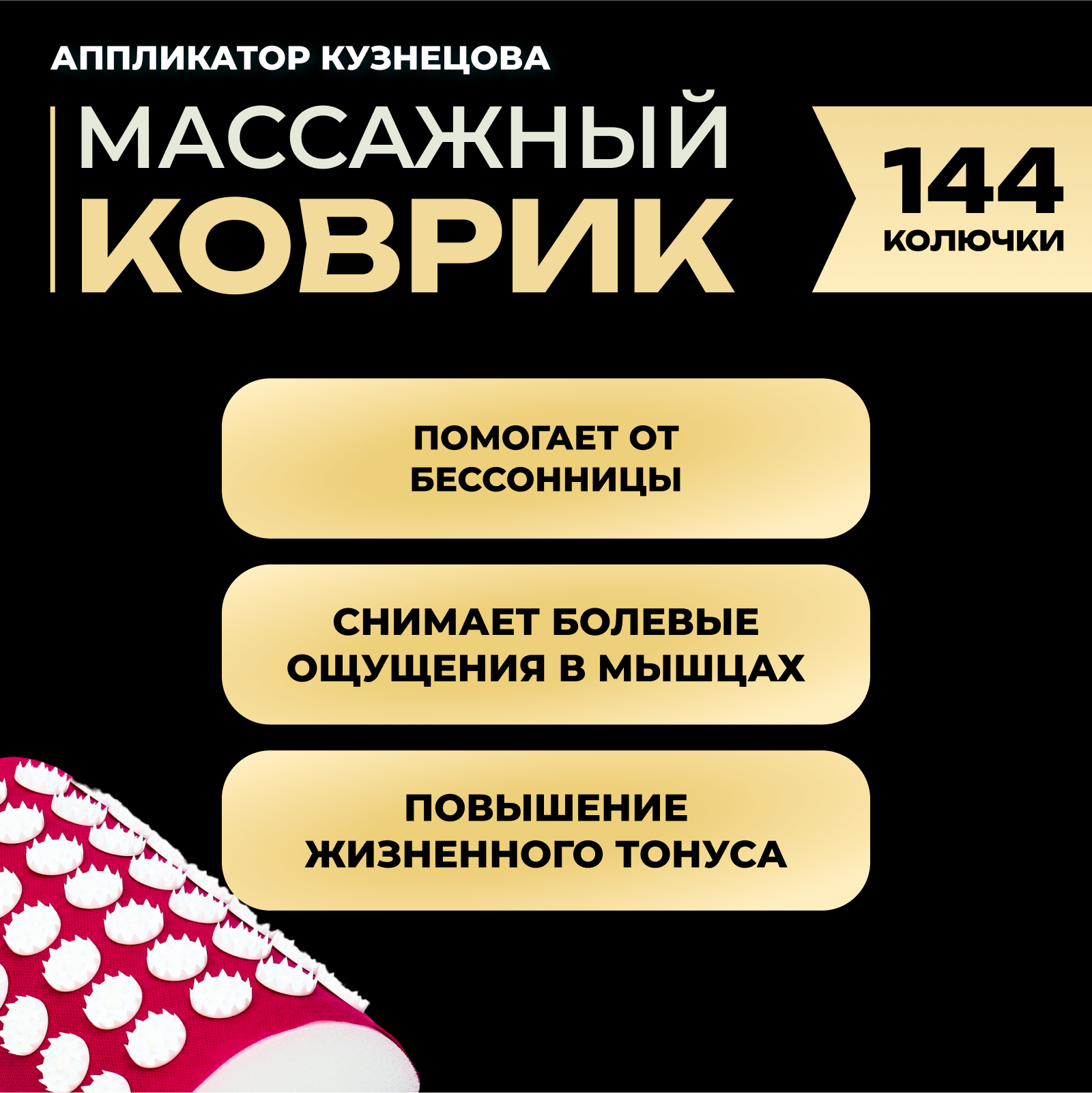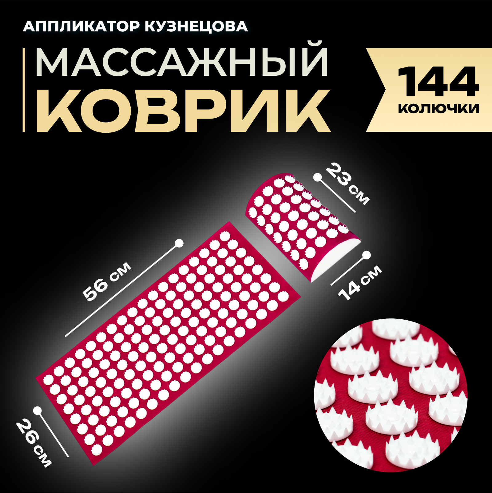 Аппликатор Кузнецова комплект, 144 колючки, спантекс, красный, 260 х 560 мм + валик 140*230 9874961 интересное: