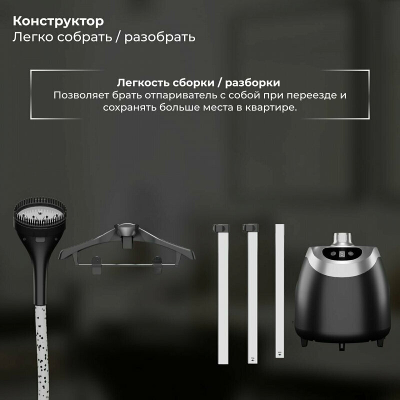 Напольный отпариватель для одежды вертикальный SATE MT-100/утюг и отпариватель/2000Вт, 1.5 л, плечики для одежды, черный интересное: