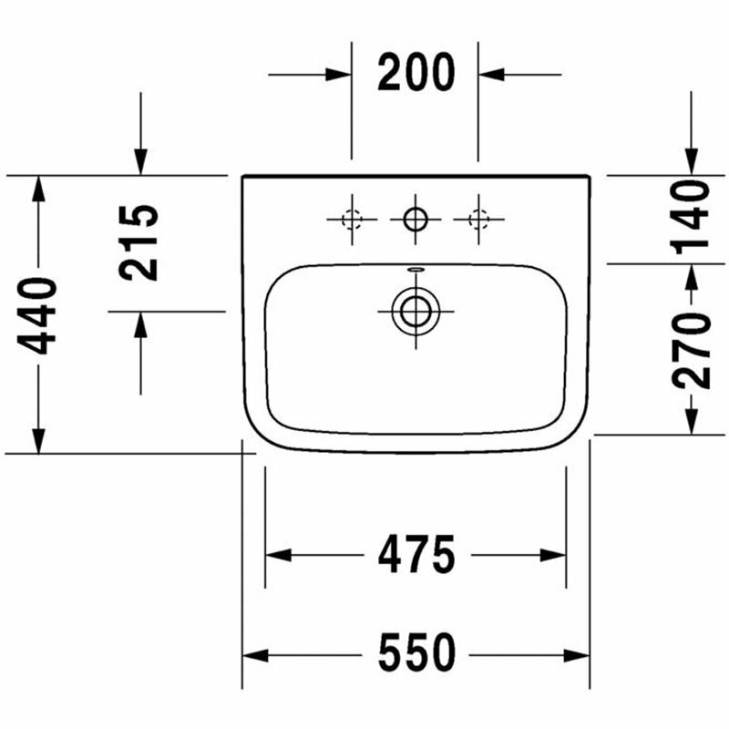 Подвесная раковина Duravit DuraStyle 55х44х17см, арт. 2319550000, санфарфор, с 1 отверстием для смесителя, с переливом