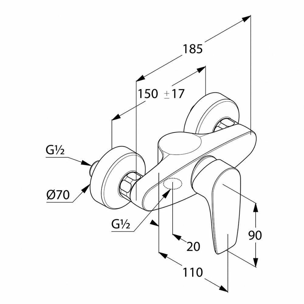 Смеситель для душа KLUDI PURE SOLID однорычажный, хром (348410575)