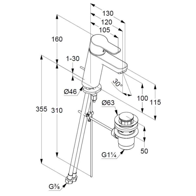 Смеситель Kludi Pure&Easy 371900565 для раковины с донным клапаном