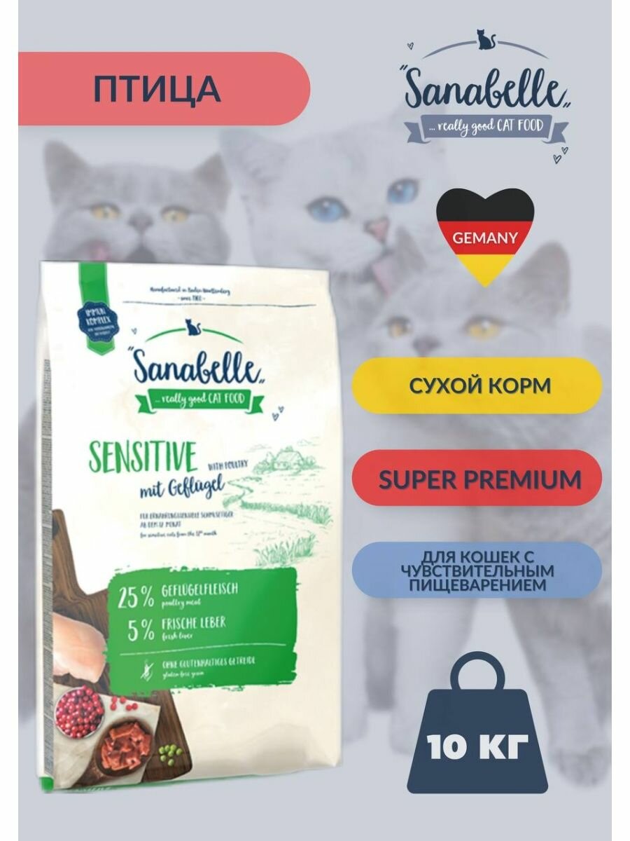 Sanabelle Сенситив/птица сухой корм для кошек 10 кг интересное: