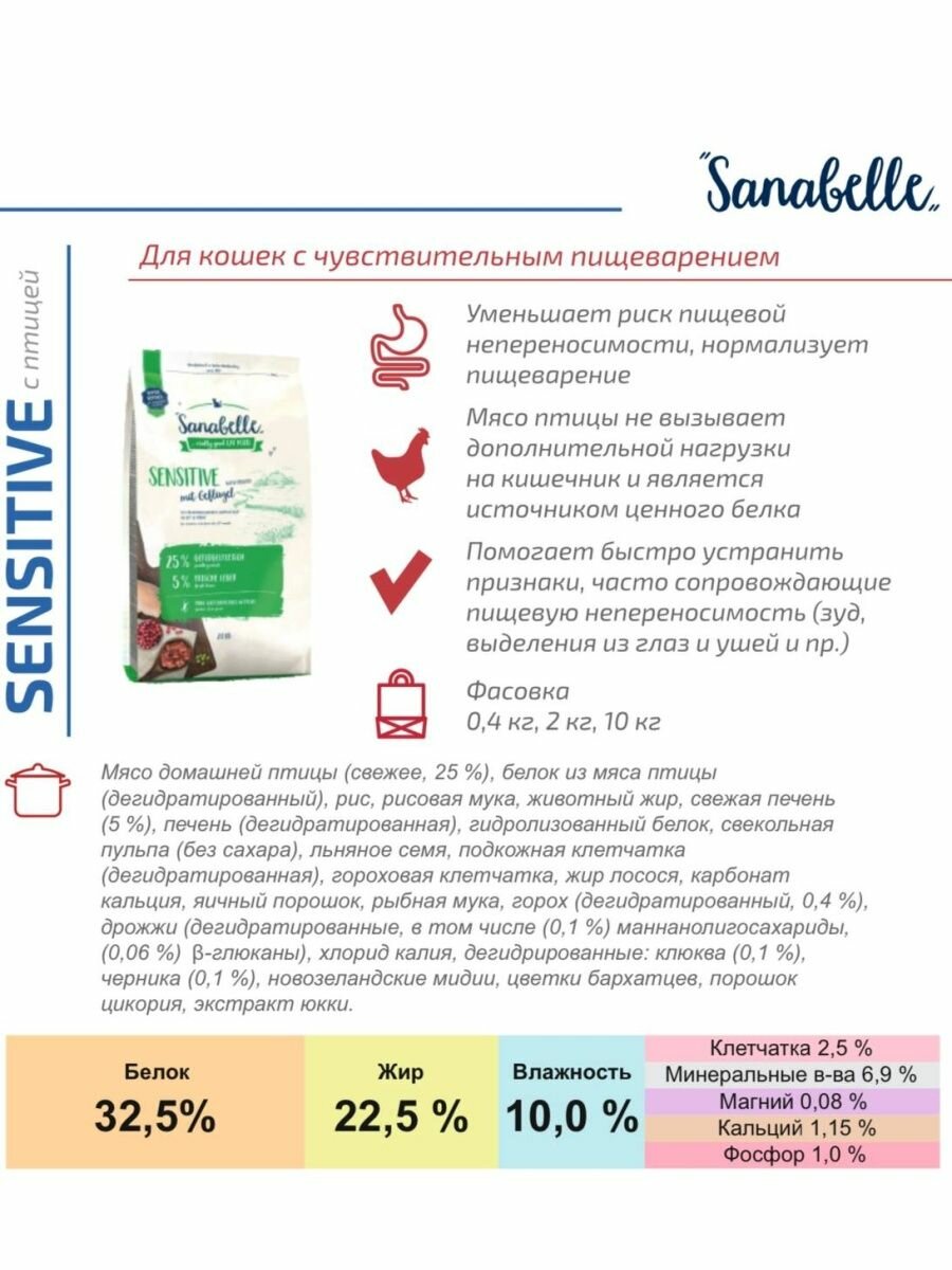 Sanabelle Adult Sensitive Poultry Сухой корм для кошек с чувствительным пищеварением с Птицей 2кг