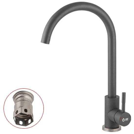 Купить Смеситель для кухни (SUS 304) D35 AVZAR4-A304GR серый AV Engineering (Поворотный излив, длина 18 см, высота 25 см) (AVZAR4-A304GR-734)