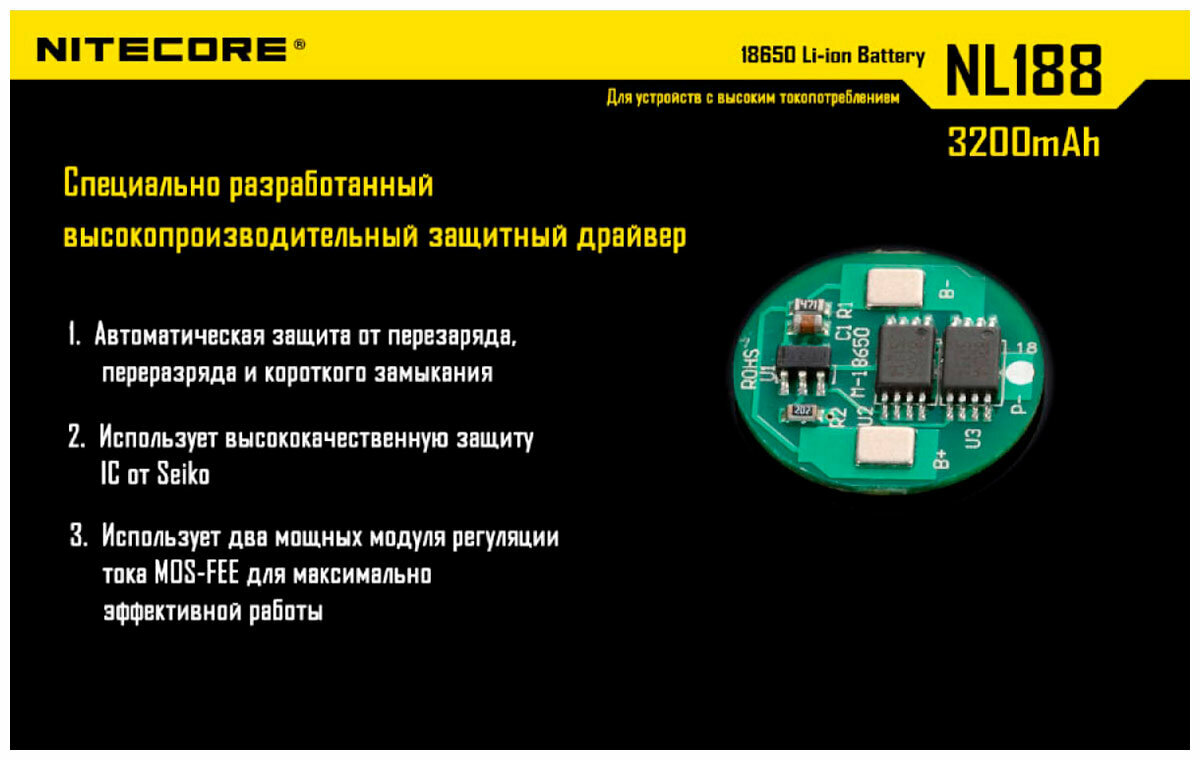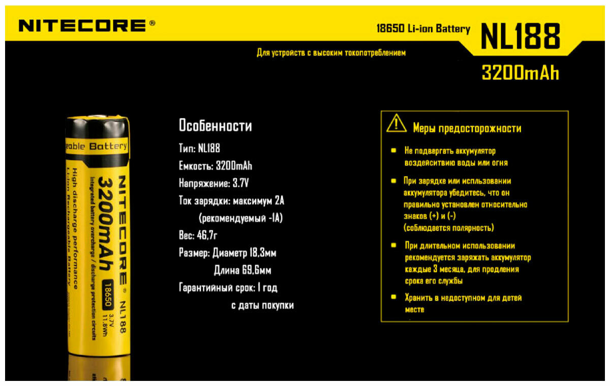 Nitecore Аккумулятор NL1832 18650 3.7v 3200mA 10386 интересное: