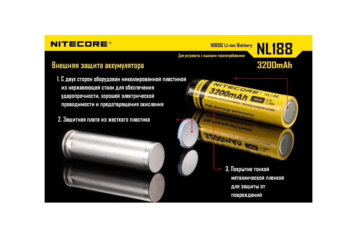 Аккумулятор NITECORE NL1832 18650 3.7v 3200mA аккумулятор с защитой