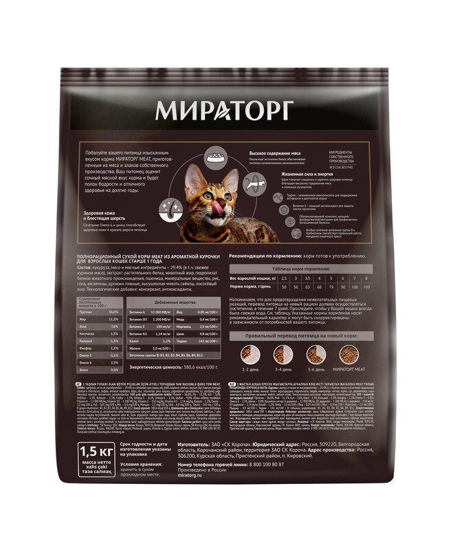 Сухой корм мираторг MEAT для взрослых кошек с ароматной курочкой ( 1,5 кг)