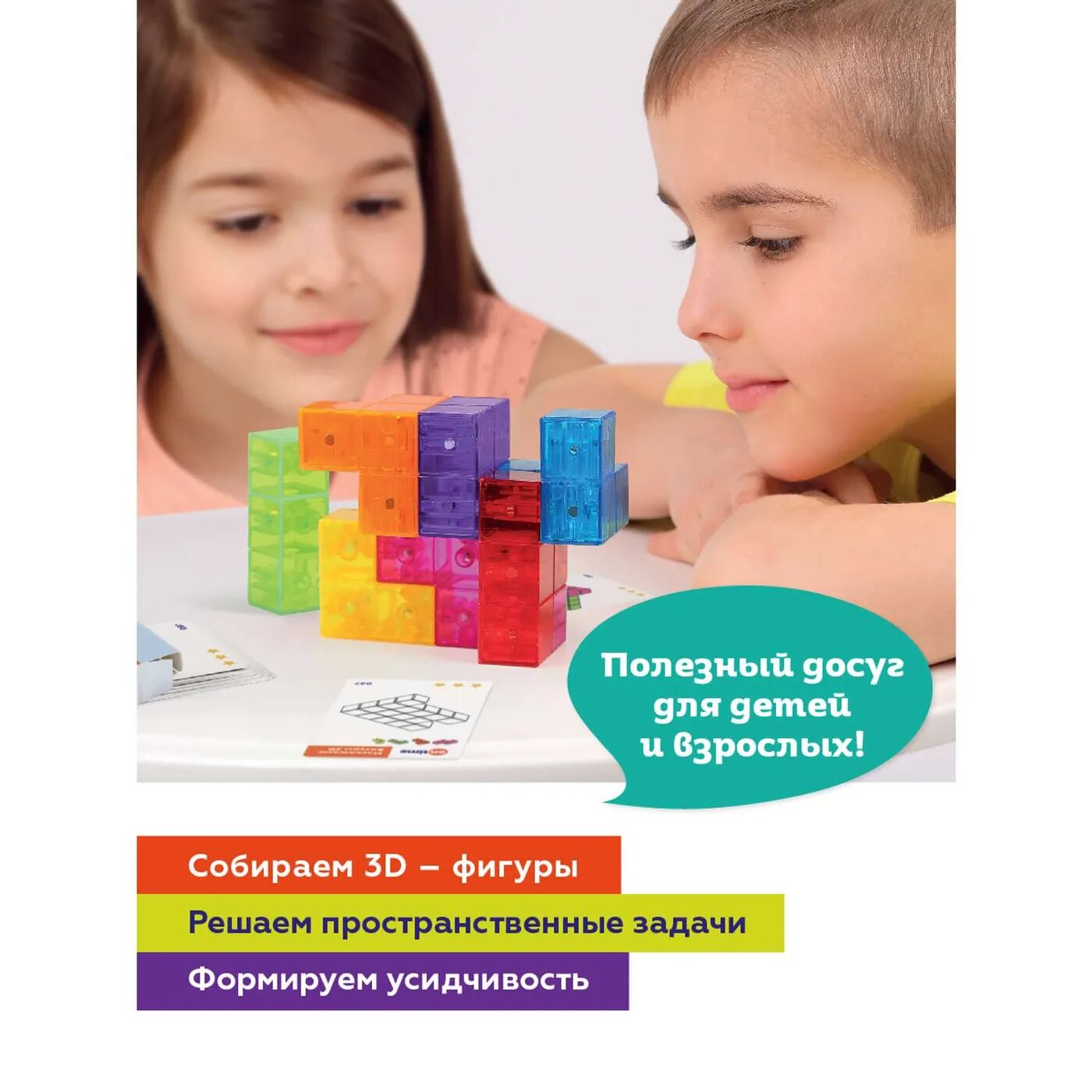 Головоломка конструктор On Time "Фигуры 3D" магнитный, для развития логики, 7 элементов, 108 заданий