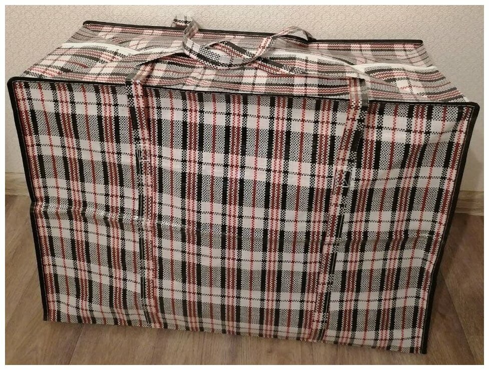 Комплект 10 шт, Сумка-баул хозяйственная, полипропилен, 70х50х30 см,105 литров, черно-красная, 170 г/м2, любаша, 604703