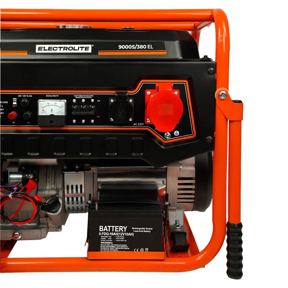 Генератор бензиновый Электрический Electrolite 9000S ( 11.25 кВа пиковая нагрузка , 220 В / 12 В, 7 / 8 кВт, 50 Гц, 16 л.с, электростартер + АКБ )