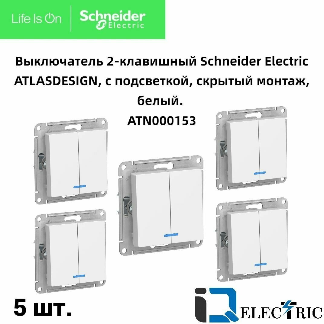 Купить Выключатель Schneider Electric AtlasDesign, 2-клавишный с подсветкой, белый, ATN000153, 5 шт.