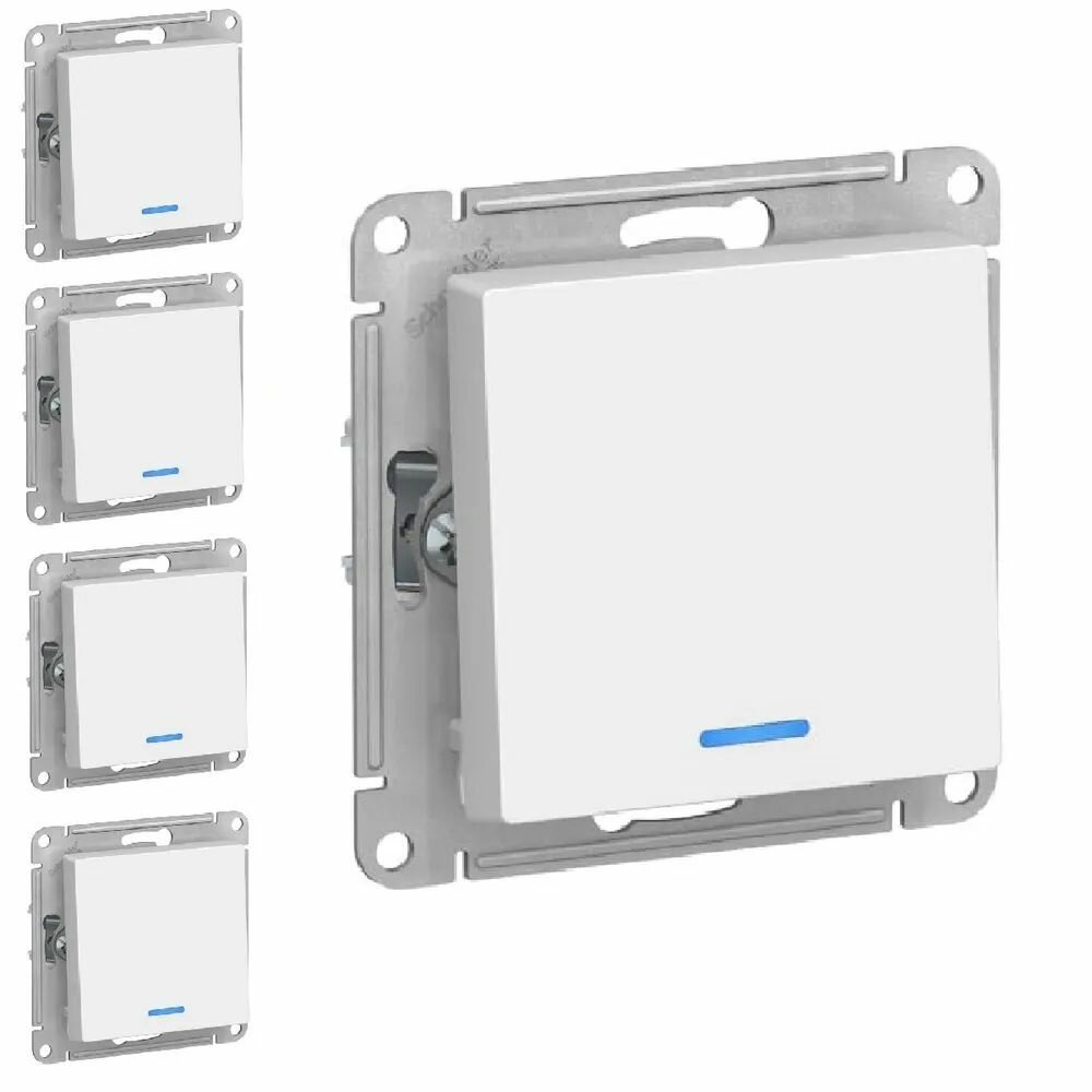 Купить Systeme Electric ATLASDESIGN 1-клавишный выключатель с подсветкой, сх.1а, 10АХ, механизм, белый ATN000113 комплект 5 шт