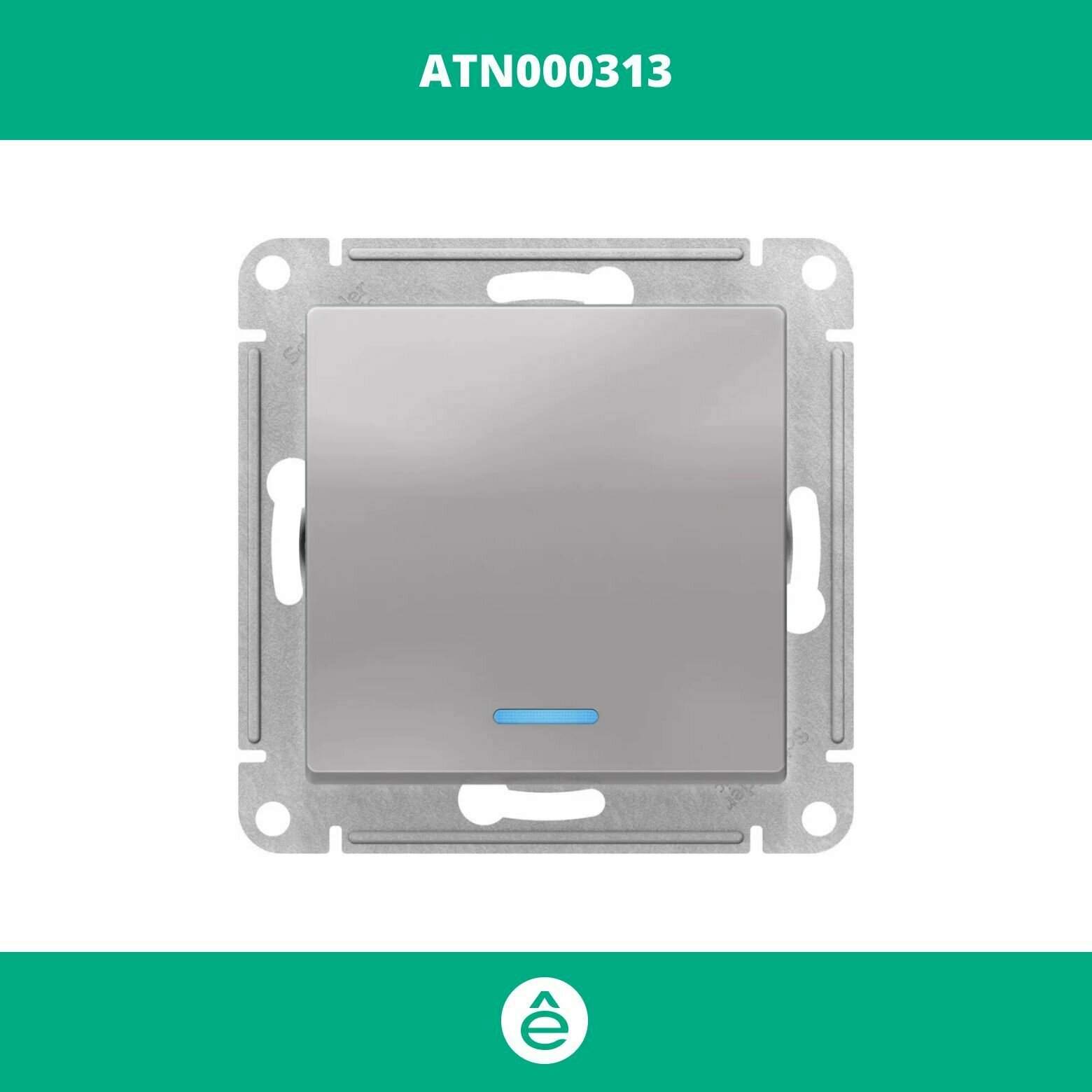 Выключатель 1-клавишный ATLASDESIGN, с подсветкой, скрытый монтаж, алюминий | код. ATN000313 | Schneider Electric (6шт. в упак.)