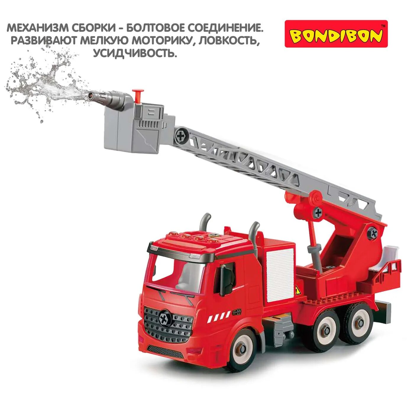 Машинка-конструктор BONDIBON с отверткой, Собирай и Играй «пожарная часть», 74 дет. (ВВ4846)