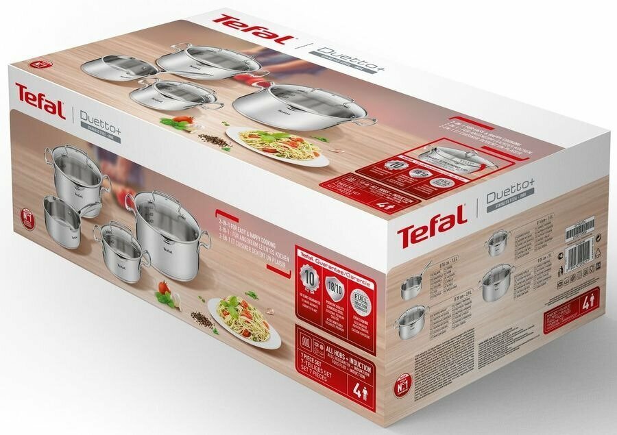 Купить Набор посуды Tefal Duetto+ G719S734 7 пр. нержавеющая сталь