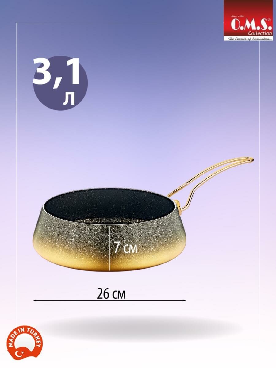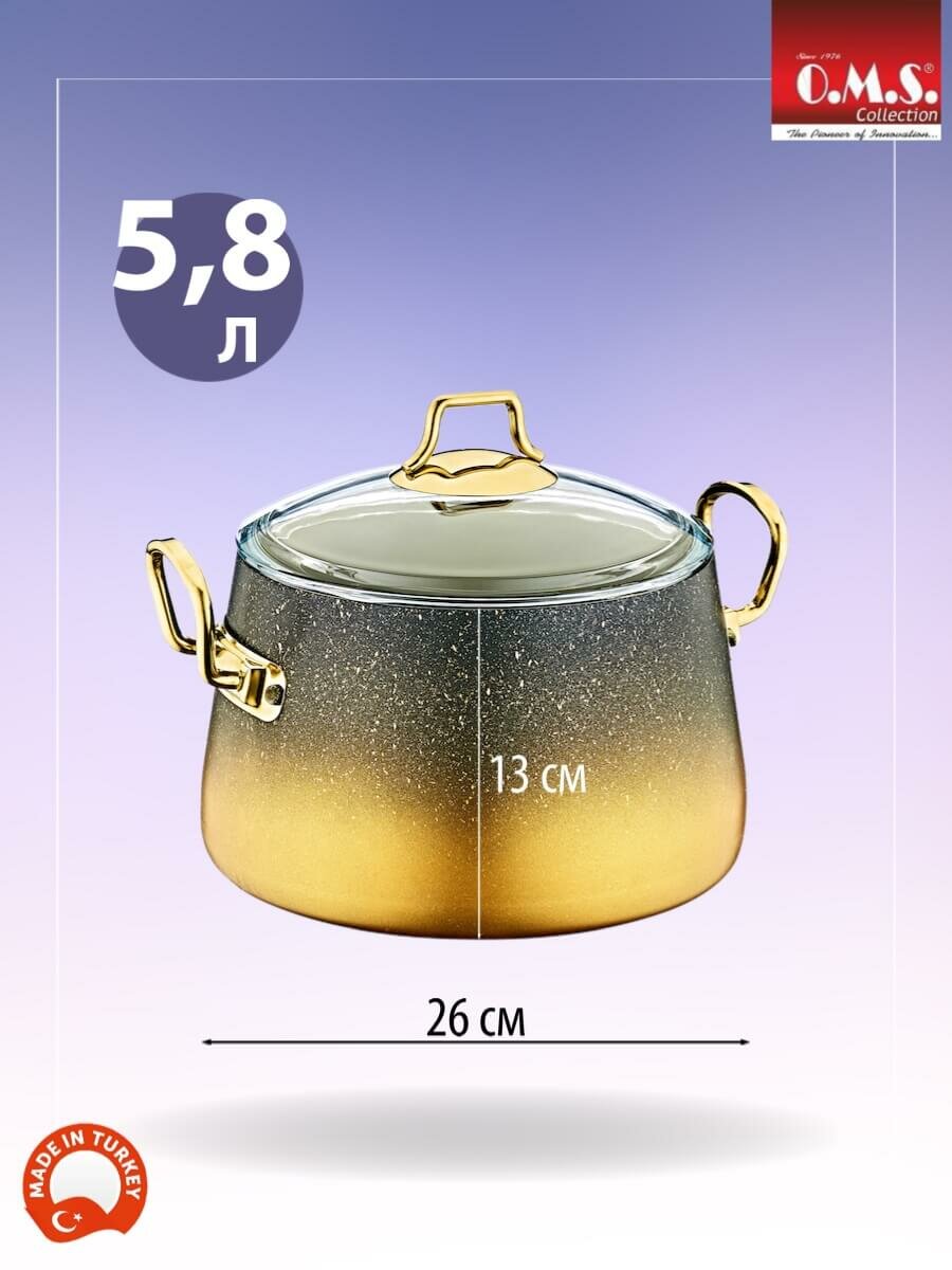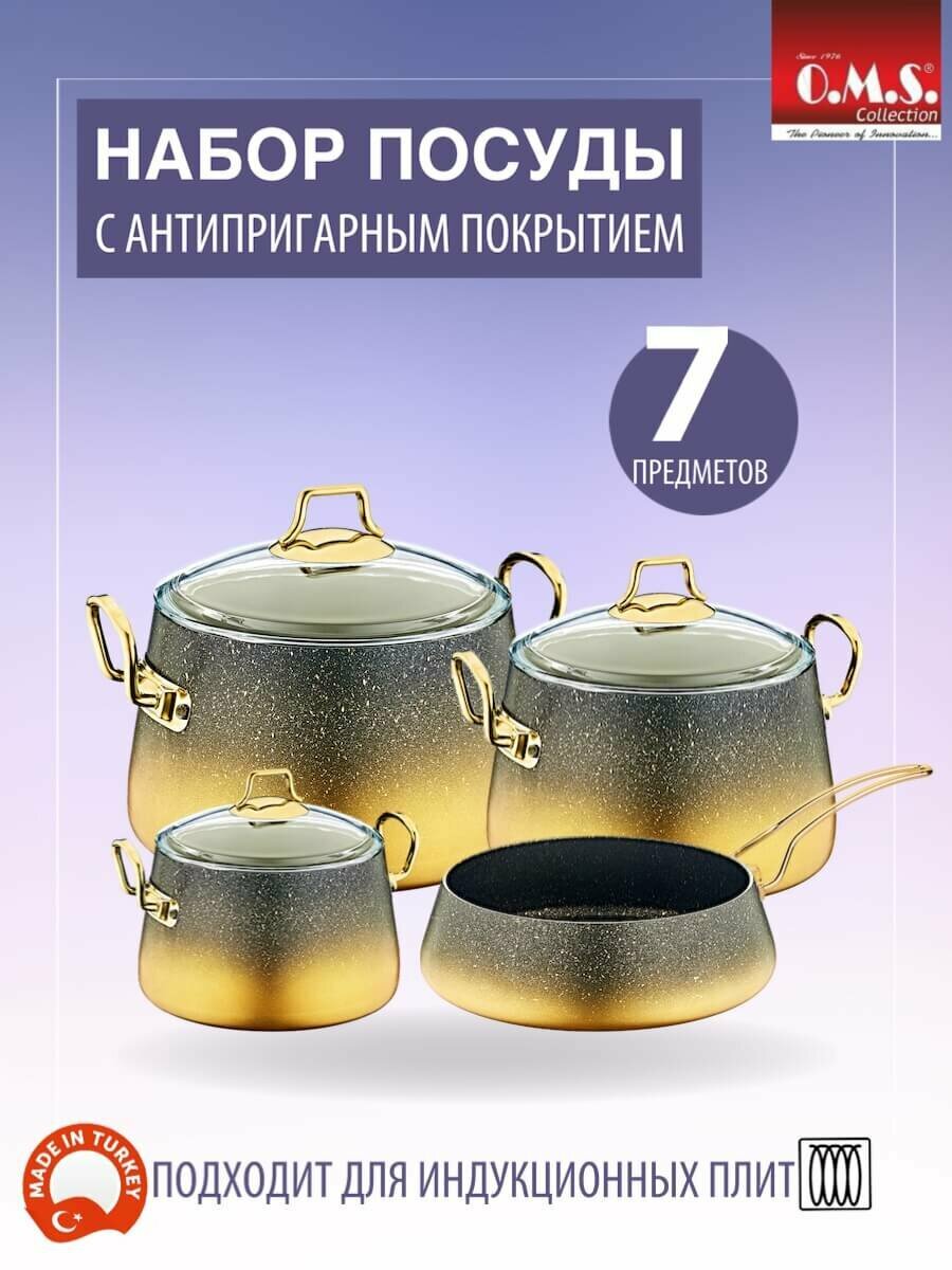 Набор посуды O.M.S. Collection с антипригарным покрытием из 7 предметов. Цвет: черно-золотой.