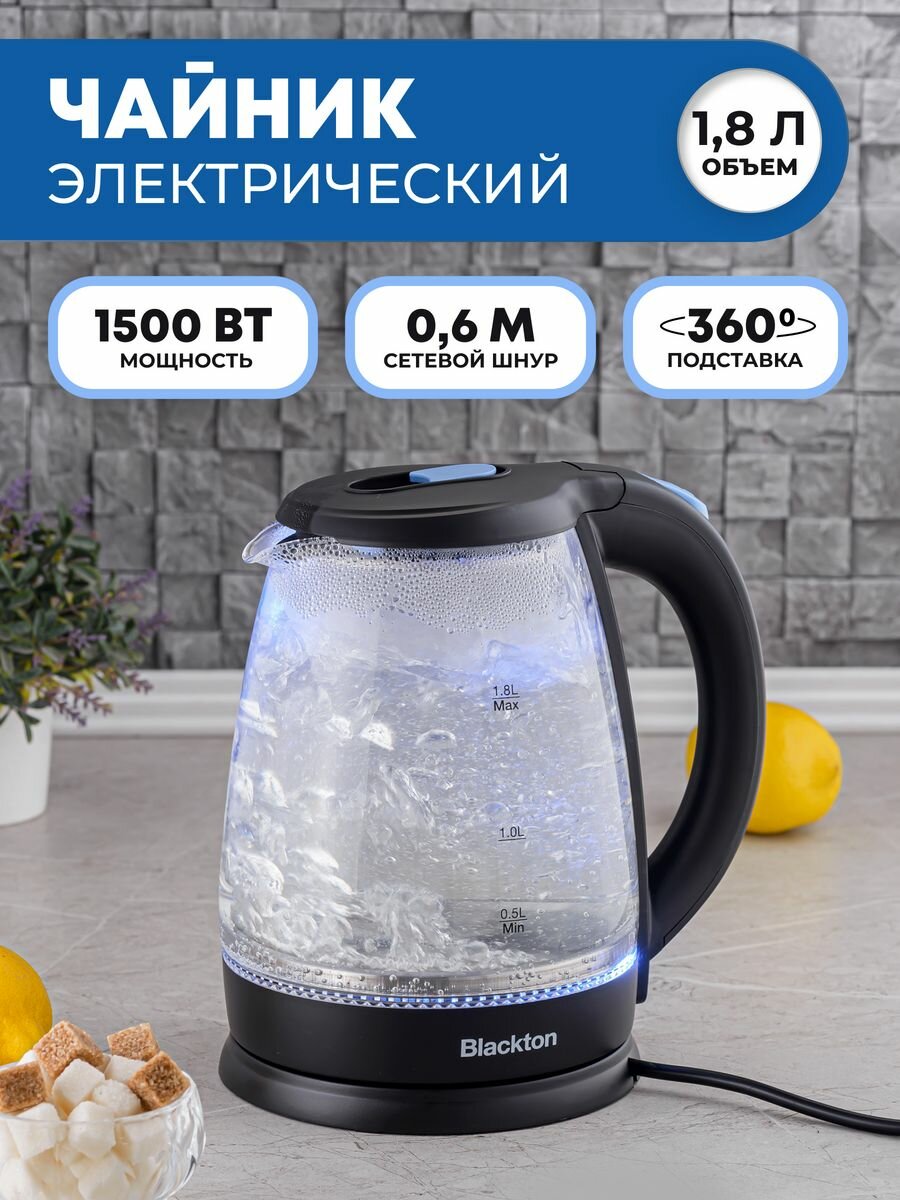 Чайник электрический Blackton Bt KT1824G Черный-Синий интересное: