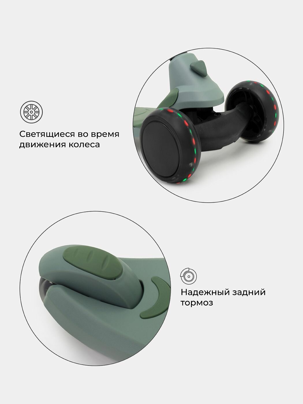 Беговел-самокат RB100 "Rider" со светящимися колесами от 1 года, зеленый интересное:
