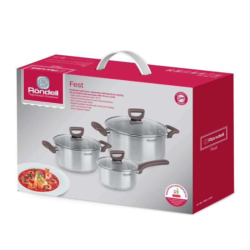 1324 Набор посуды 6 предм: кастрюли с/кр 20 см 2,8 л, 24 см 4,8 л и ковш с/кр 16 см 1,4 л Fest Rondell