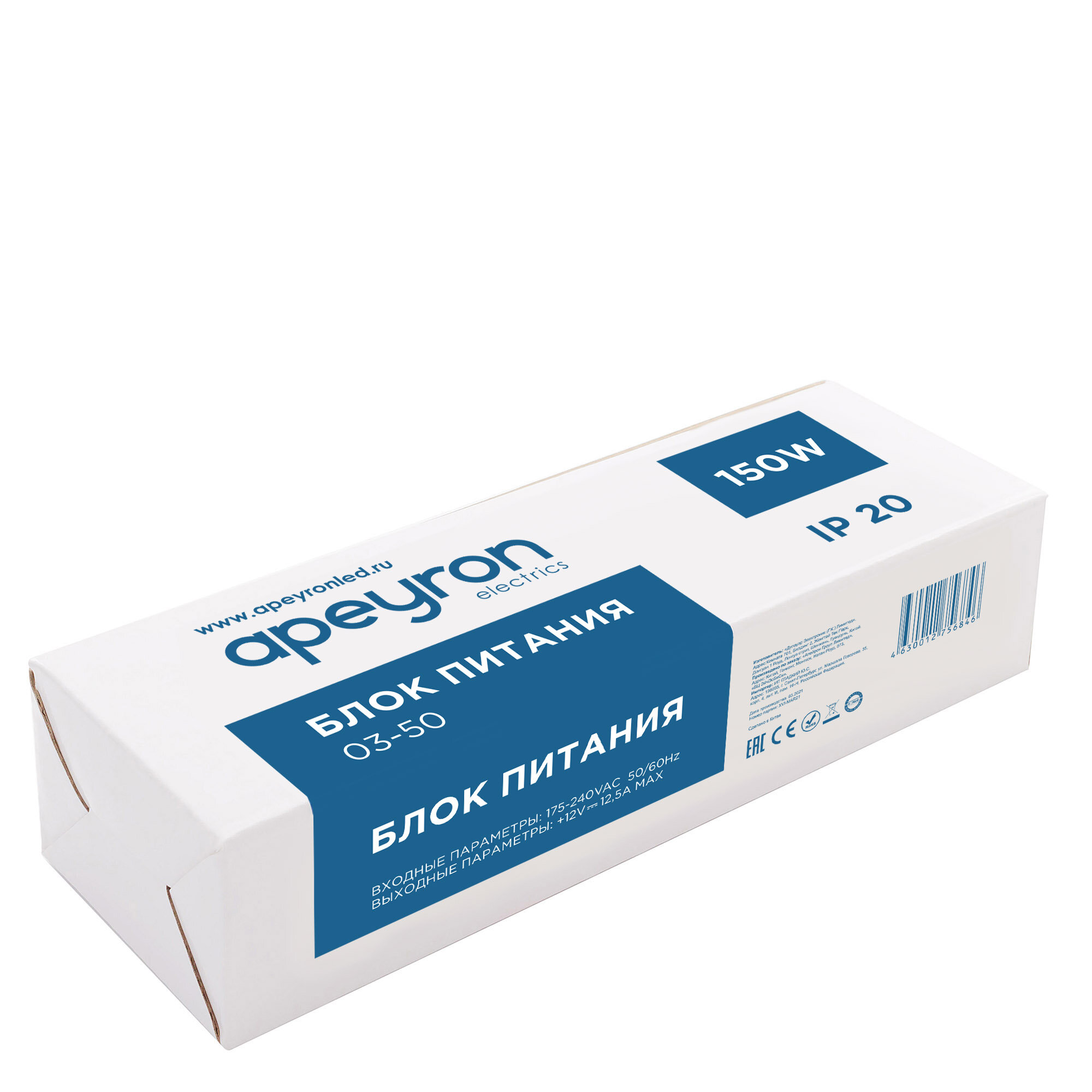 Блок питания Apeyron Electrics (слим-металл) 12В, 150 Вт, IP20, 12,5 А, 200*59*39 мм