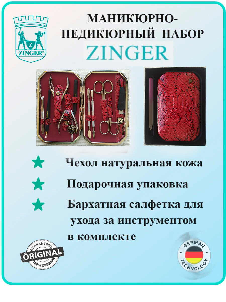 Маникюрный набор MSFE-804-S, ZINGER, 10 предметов, красный крокодил