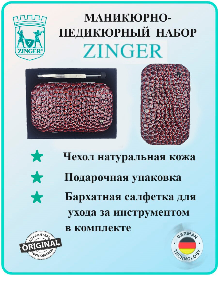 Маникюрный набор Zinger MSFE-804 S, 10 предметов, серебристый/бордовый крокодил