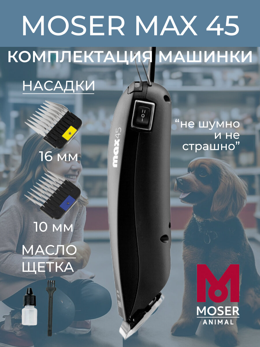 Сетевая машинка Moser для стрижки животных Max45, с быстросъемным ножевым блоком,черный интересное:
