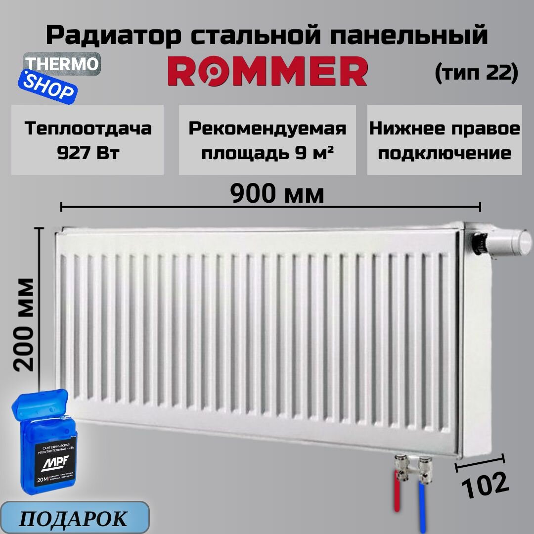 СохранитьРадиатор Rommer Ventil 22/200/900 нижнее подключение, панельный интересное:
