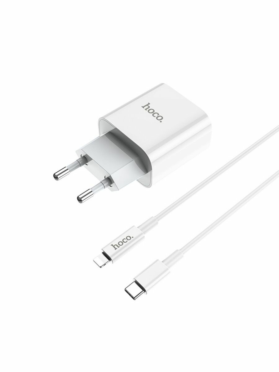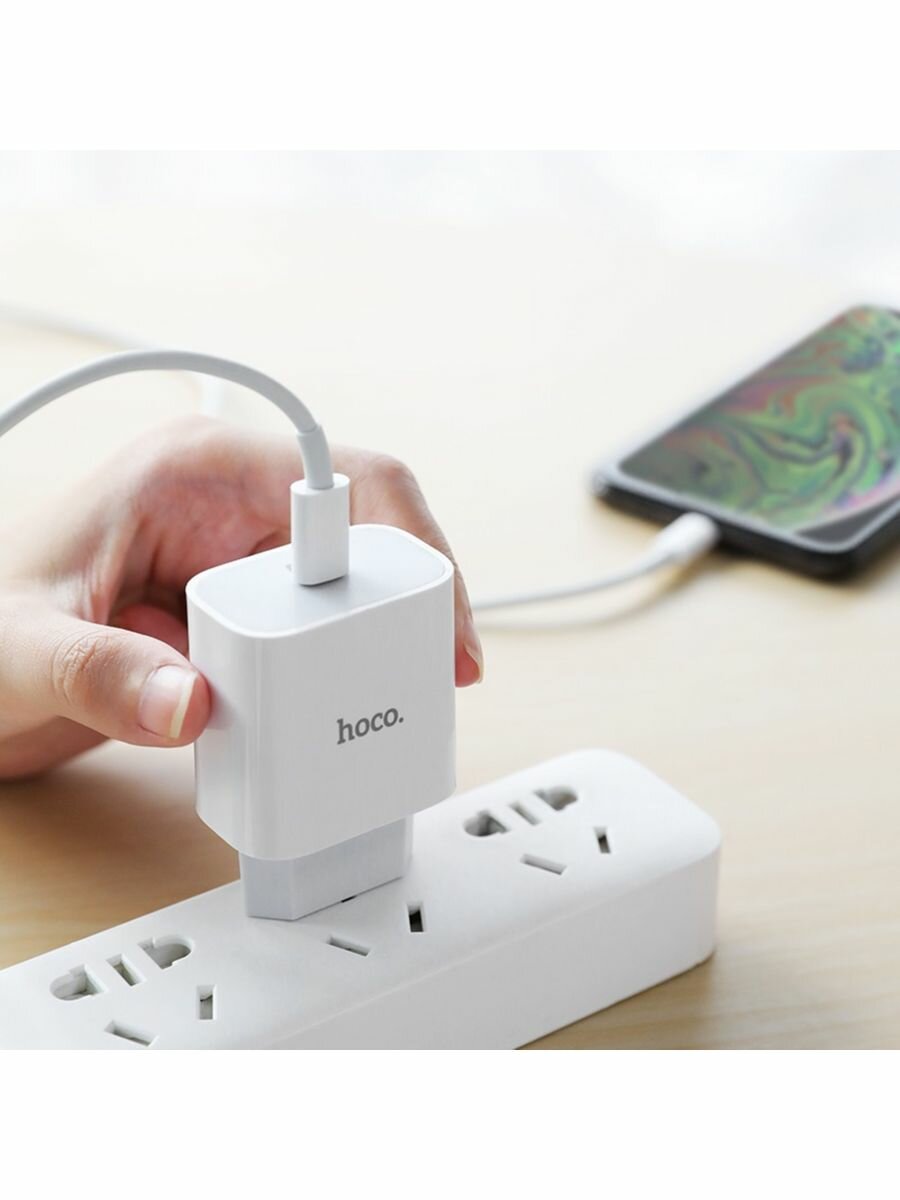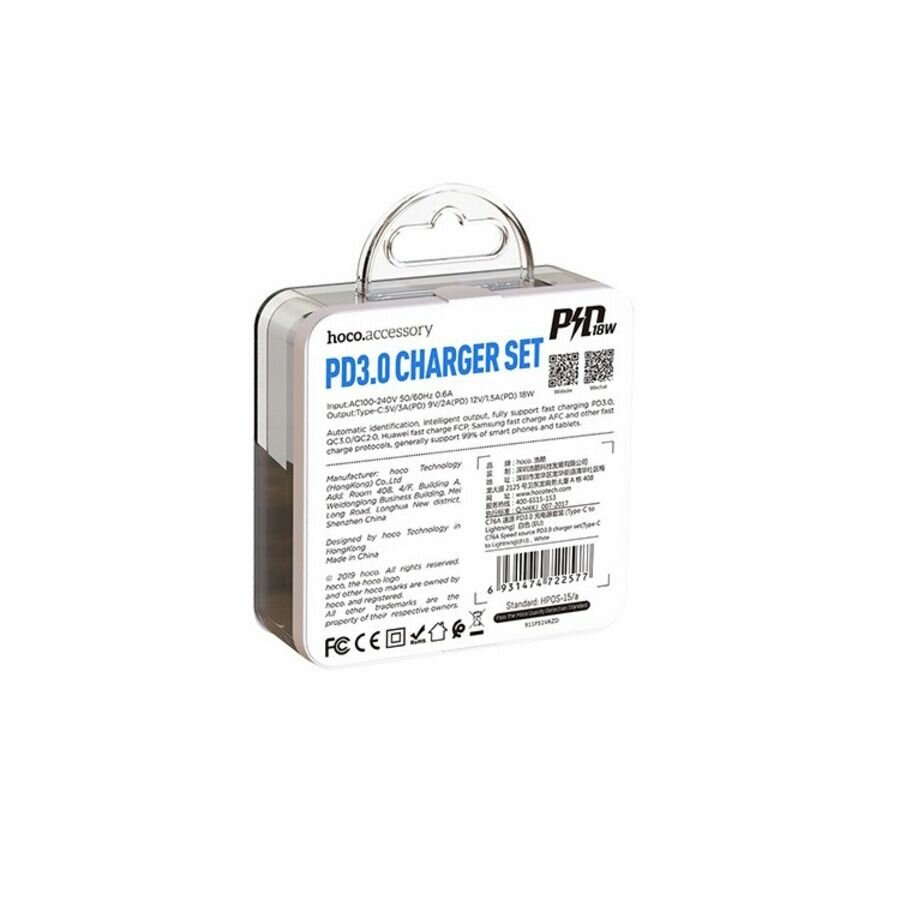 Сетевое зарядное устройство + кабель для iP Lighting to Type-C C76A PD 20W+QC3.0 3A HOCO белый